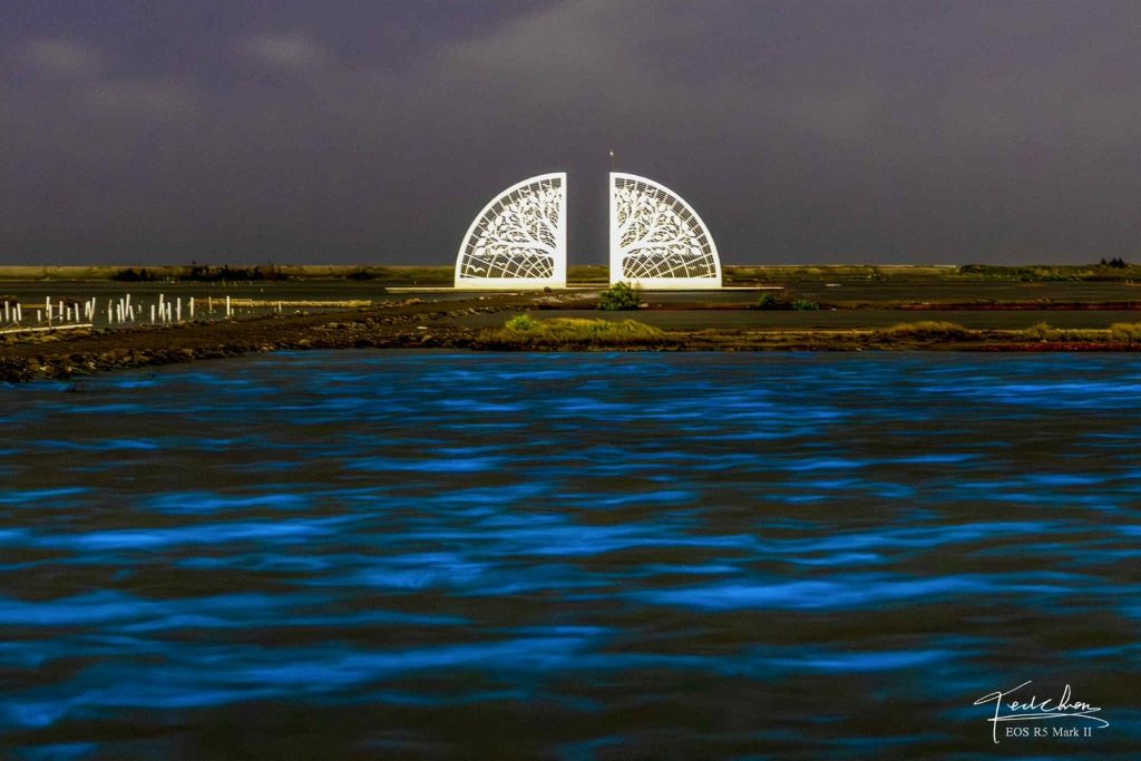 「藍眼淚」是夜光藻經波動而發出藍色螢光自然景觀,將軍區青山漁港及將軍漁港南岸一帶海面在二0二三年曾出現,近日於附近海面再次出現,同樣湧進不少遊客。