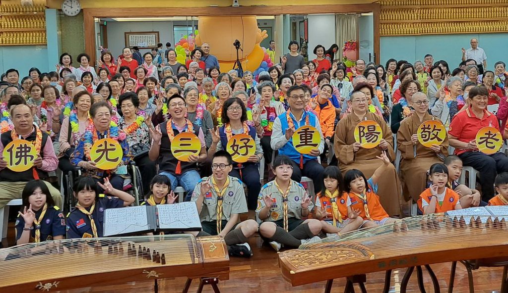 重陽節前夕,佛光山三重禪淨中心舉辦「佛光三好、重陽敬老」活動,邀在地二百餘名長者在家人陪同下歡喜參加;現場有古箏、吉祥鼓、排舞表演,並有中西醫義診、整復保健、義剪頭髮,甚至由醫甲館專為長輩修剪腳趾甲。佛光幼童軍和青年團員則為長者跪膝奉茶,以彰顯傳統重陽敬老的美德。
