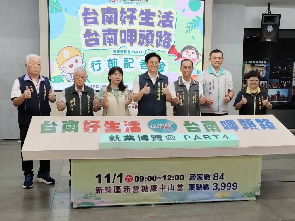 南市勞工局舉辦今年第四場「台南好生活、台南呷頭路」大型就業博覽會,十一月一日上午九時至十二時,將在新營區新營糖廠中山堂登場,勞工局說,此次邀集八十四家廠商釋出近四千個職缺,近六成薪資超過三萬五千元,想找工作、換工作民眾要把握機會。