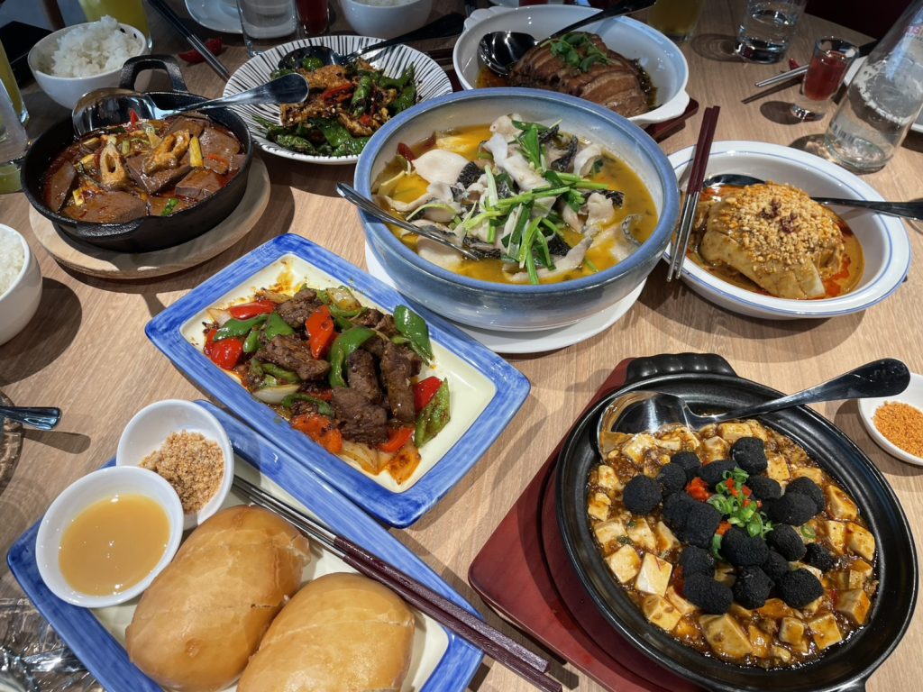 除了「熊貓豆腐」之外,開飯川食堂的招牌菜依舊維持高人氣。梅干鹹燒白以梅干菜與五花肉細火慢蒸,鹹香入味、入口即化;回甘酸菜魚結合爆香酸菜與泡椒、烏鱧魚片及多樣蔬料,再以高湯煨煮、藤椒油提香,酸中帶麻、辣而不嗆,是愛吃重口味的首選。流口水雞選用仿土雞,淋上芝麻醬汁與辣油,香氣撲鼻、辣中帶香,征服食客味蕾。