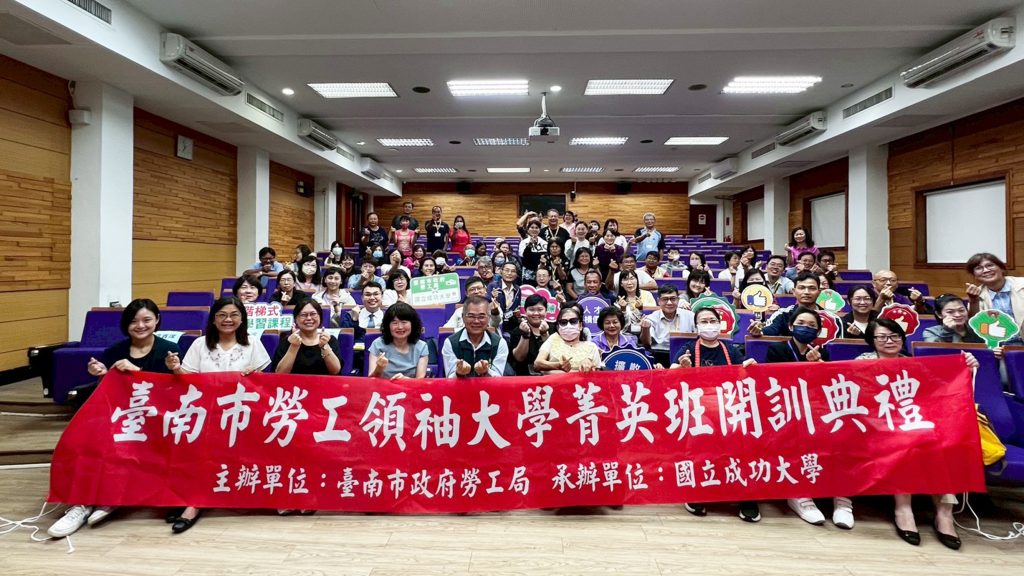 南市勞工局與成大合辦「勞工領袖大學菁英班」二十七日晚間開訓,有近百名勞工領袖齊聚學習,勞工局長王鑫基說,勞工領袖大學為在職勞工打造終身學習的環境,期勉踏進「成功大學」的知識殿堂,透過持續精進學習,增強職場競爭力,創造更好的未來。