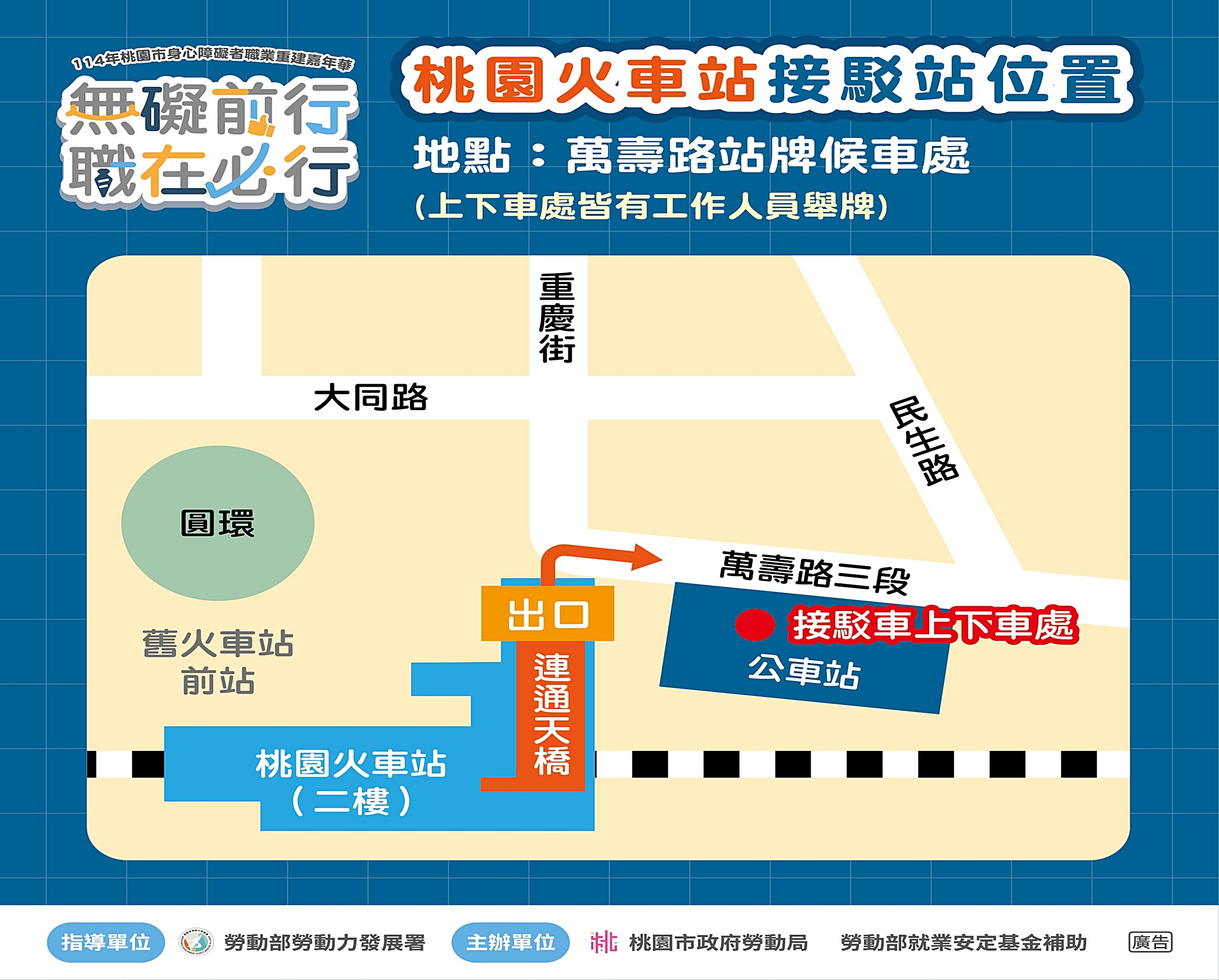 活動全程提供手語翻譯、同步聽打及無障礙觀賞區,市府也貼心規劃免費接駁車往返桃園火車站與會場,方便市民朋友參與。