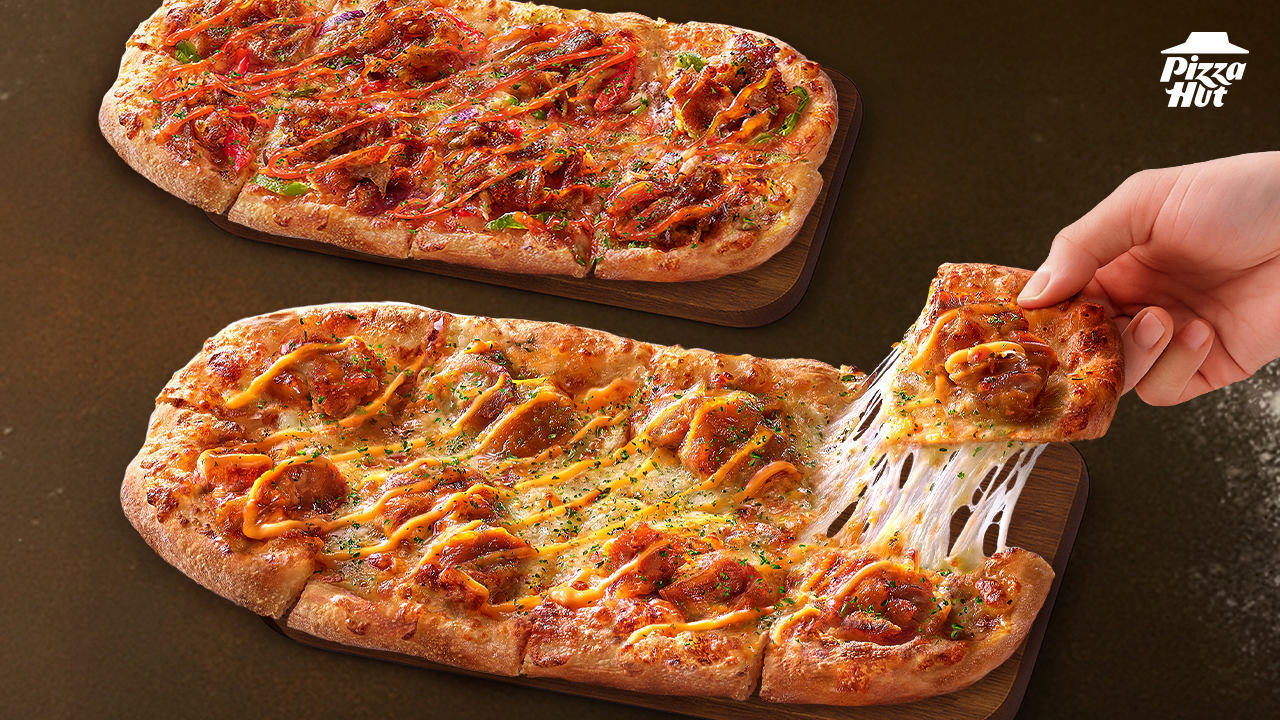 必勝客「手工義式薄比薩」雙口味一次推出!「五重起司蒜香雞」以香嫩雞腿肉為主角,搭配義式蒜香起司白醬打底,再融入莫札瑞拉、康門貝爾、帕達諾、帕瑪森與切達等五款經典起司的濃郁香氣,層次飽滿卻不膩口,讓起司控一試成主顧。「韓式雙醬雪花牛」則將韓風美味端上桌,雪花牛佐以鹹甜交織的BBQ與韓式洋釀雙醬,肉香與醬香完美融合,再配上紫洋蔥、紅椒、青椒增添爽脆層次,最後撒上莫札瑞拉起司與洋香菜葉收尾,一口咬下香氣四溢、過癮滿分!