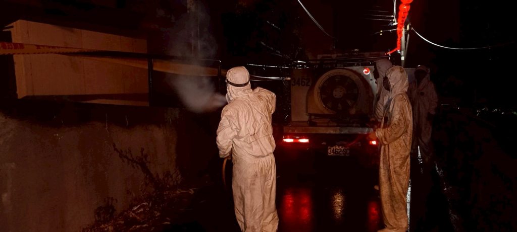 台中非洲豬瘟案場清消後二區域仍驗出病毒DNA,市府接獲通報,連夜再次、全面執行清消。(記者陳金龍翻攝)