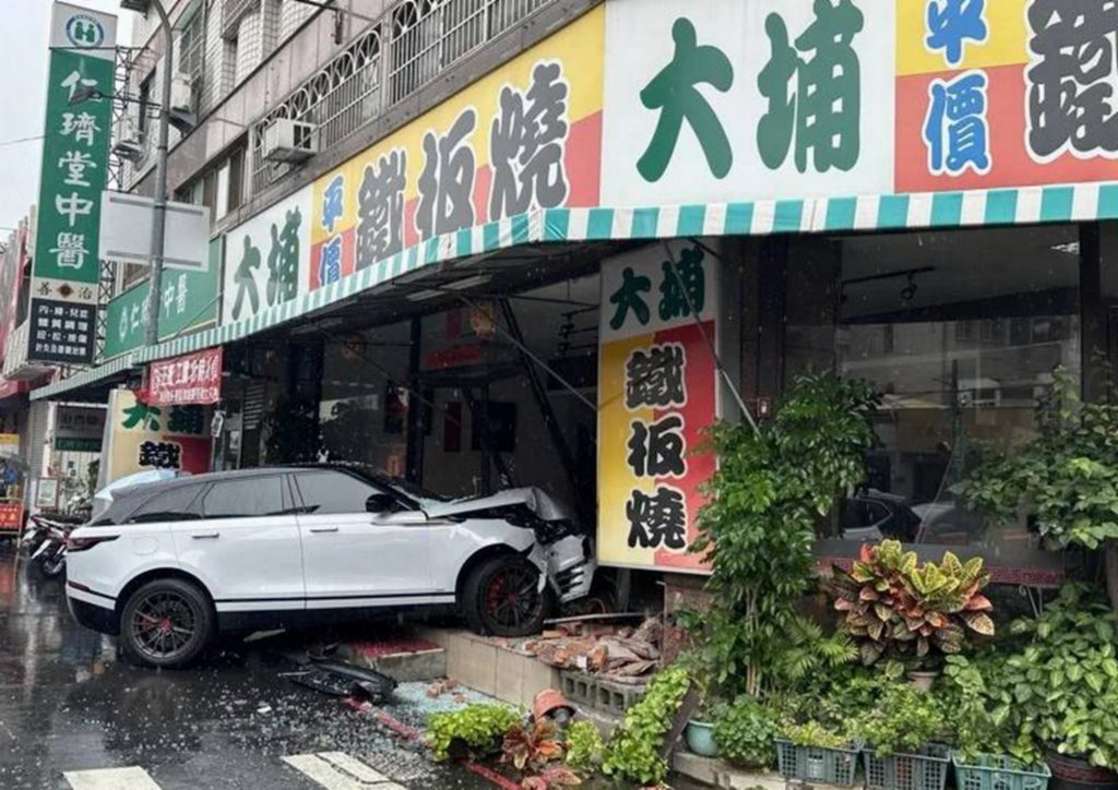 台中市消防局昨日上午十時二十六分獲報,稱南區高工路有車禍救護案件,消防人員趕赴現場時,只見一輛休旅車撞進路口「大埔鐵板燒」店內,車頭嚴重凹陷,店內玻璃碎裂、桌椅翻飛,所幸當時未到營業時間,未波及店內員工及客人。
