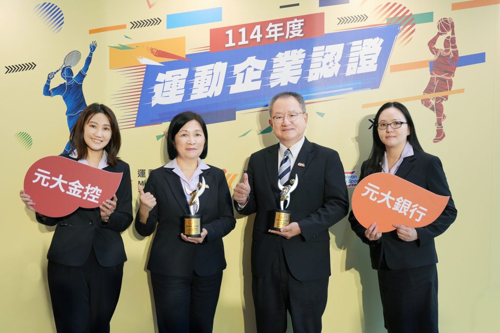 運動部鼓勵企業推動運動風氣、打造永續健康職場環境,2016年起推出運動企業認證實施計畫,公開授證表揚符合資格企業,證明標章有效期限為三年;元大金控及旗下五大子公司守護同仁身心健康,均為認證合格企業。