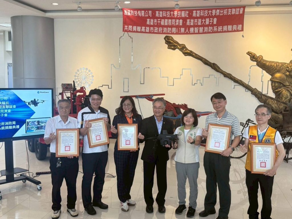 高雄市藏識科技公司攜手高科大扶輪社、高科大傑出校友聯誼會、千禧國際同濟會、雄大獅子會等四大團體,日前共同捐贈「AI無人機智慧消防系統」予高雄市政府消防局,以響應政府推動韌性國家及高雄市智慧治理精神。