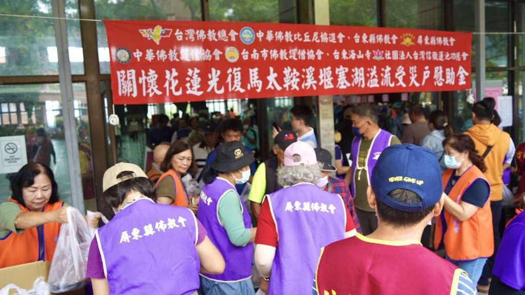 九月二十三日強颱樺加沙重創花蓮縣,光復鄉更因馬太鞍溪堰塞湖溢流造成嚴重傷亡,全台佛教界迅速動員,秉持「無緣大慈、同體大悲」的精神,合力募集新台幣一千一百八十萬元善款與物資,化慈悲為行動,前往國立光復高級商工職業學校舉行「關懷花蓮馬太鞍溪堰塞湖受災戶慰助金發放活動」,現場排隊人潮綿三公里,場面感人。