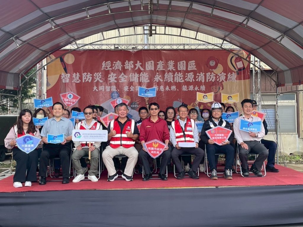 為因應新興能源設施火災風險,桃園市消防局大園分隊攜手大園產業園區服務中心,於今(29)日在大同電纜廠區,辦理儲能櫃實兵搶救演練,案場包含16組儲能電池組合屋,電壓達69 kV、總功率達43.77MW,此次演練聚焦於科技偵察、智慧救災與跨單位聯防,旨在全面提升企業自衛消防編組與消防隊的協同作戰能力。