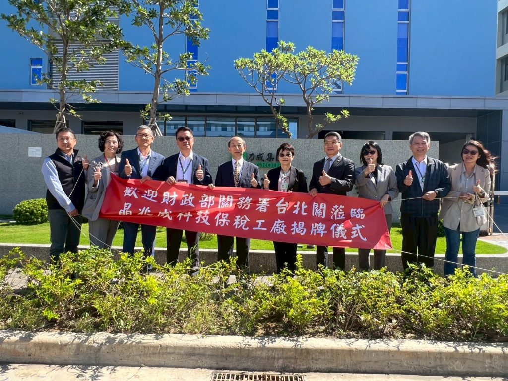 晶兆成科技股份有限公司三廠經臺北關核准登記為保稅工廠,該關副關務長許志仁於10月29日赴該廠,與該公司總經理林育全共同主持揭牌儀式。