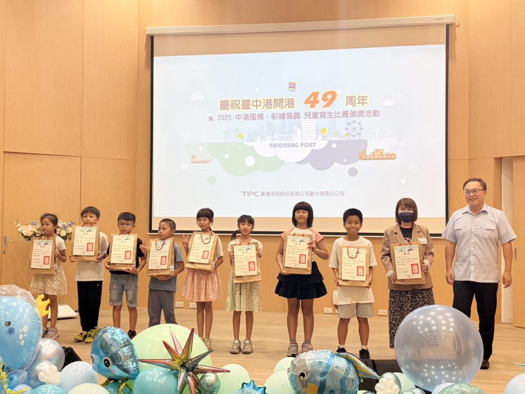 臺灣港務公司臺中港務分公司於今(114)年10月29日舉辦「慶祝臺中港開港49周年暨2025中港風情.彩繪寫真/兒童寫生比賽頒獎活動」,特邀請港區航港業界代表、政府機關及獲獎學童暨家長們共同歡慶,一同見證臺中港49年來輝煌成就與永續轉型的嶄新面貌。