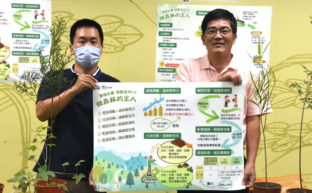 配合農業部推動最新修訂造林政策,南市府農業局正式全面推廣「獎勵造林二點0」計畫,針對造林目的、樹種選擇、獎勵期限及合理獎勵金等面向通盤調整,兼顧木材供給、生態保育與土地永續。