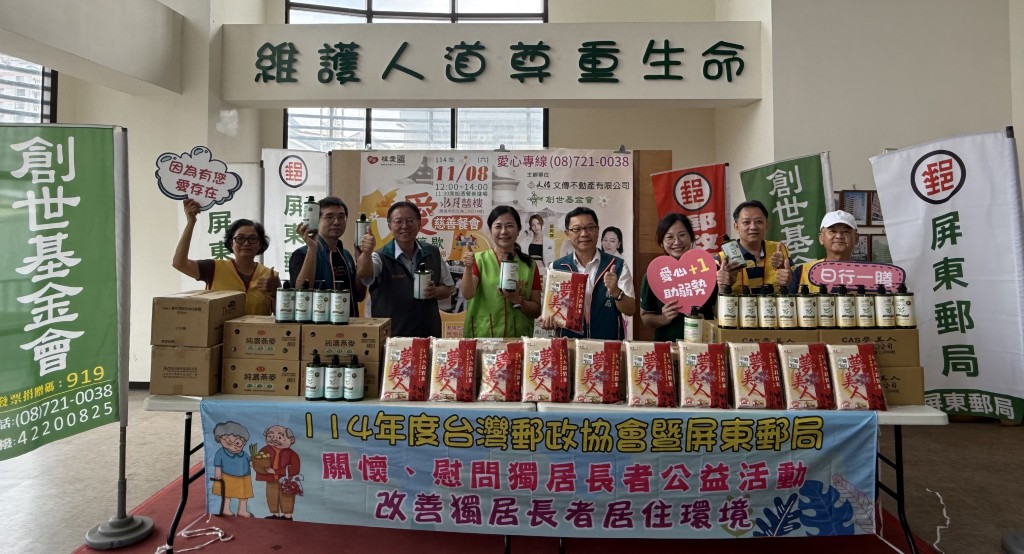 屏東郵局與台灣郵政協會舉辦「捐贈物資,關懷、慰問長者公益活動」,由屏東郵局局長徐世英率領同仁前往創世基金會屏東分院,訪視並關懷院內的植物人長輩,以實際行動傳遞社會溫暖。