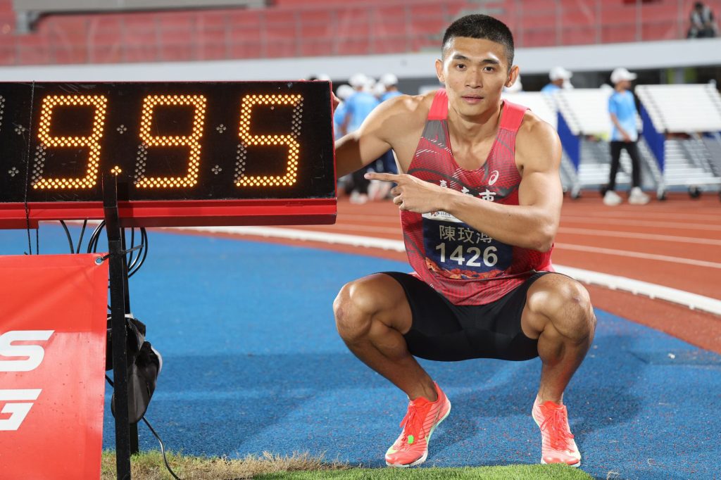 南大碩士班學生陳玟溥在一一四年全運會男子一百公尺決賽飆出九秒九五(一一四年全運會籌備處提供)