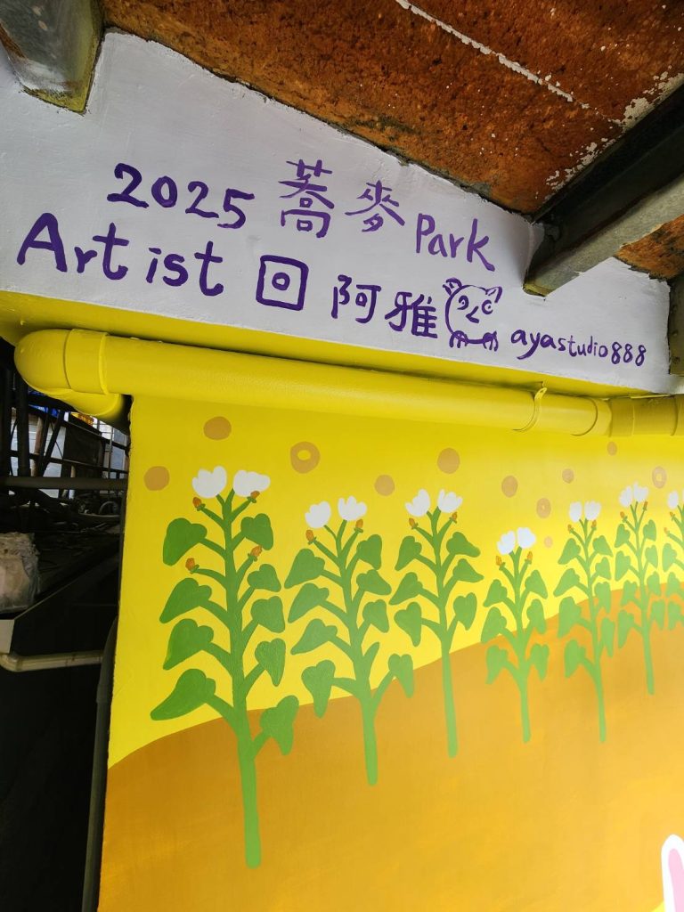 如今官田區農會也看上張郁雅的彩繪功夫,邀請她為大面牆作畫,張郁雅人嬌小卻膽子大,可以獨自一人站在高高的鷹架上作畫,三十日已完成大面牆的畫作,金黃色的蕎麥、色彩繽紛的菱角鳥,讓整面牆相當醒目耀眼。農會指出,目前區內推動蕎麥種植,台灣的黃金蕎麥品質相當好,可成為重要的雜糧經濟作物,未來將是官田區繼菱角之後,另一重要產業,所以用大面牆來呈現官田的生態產業,同時也配合淨零時代來臨,希望低碳產業成為官田最具競爭力的經濟作物。