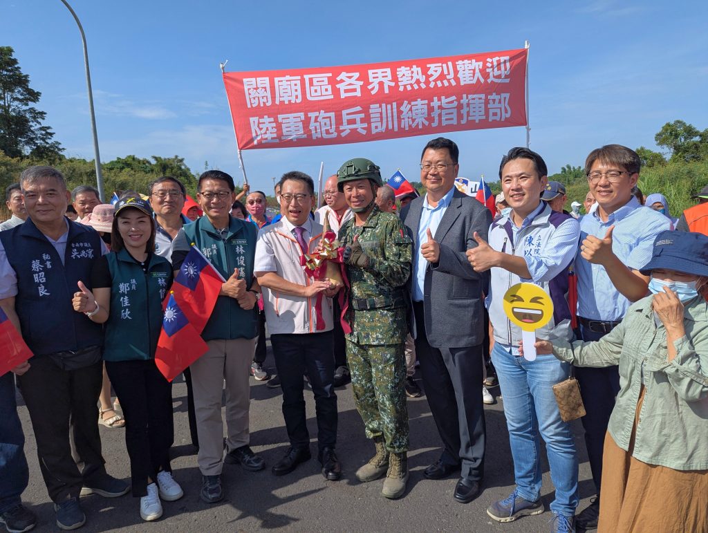 陸軍砲兵學校訓練指揮部三十日離開永康校區,正式進駐關廟區,區公所特別在湯山大道砲指部校門口舉辦「進駐歡迎儀式」,由區長陳必成親自主持,並邀集各界貴賓、地方民意代表及鄉親共同見證歷史性時刻,活動現場熱烈,民眾揮舞著小國旗迎接部隊進駐,場面隆重又溫馨,更展現出軍民一家親的情誼。