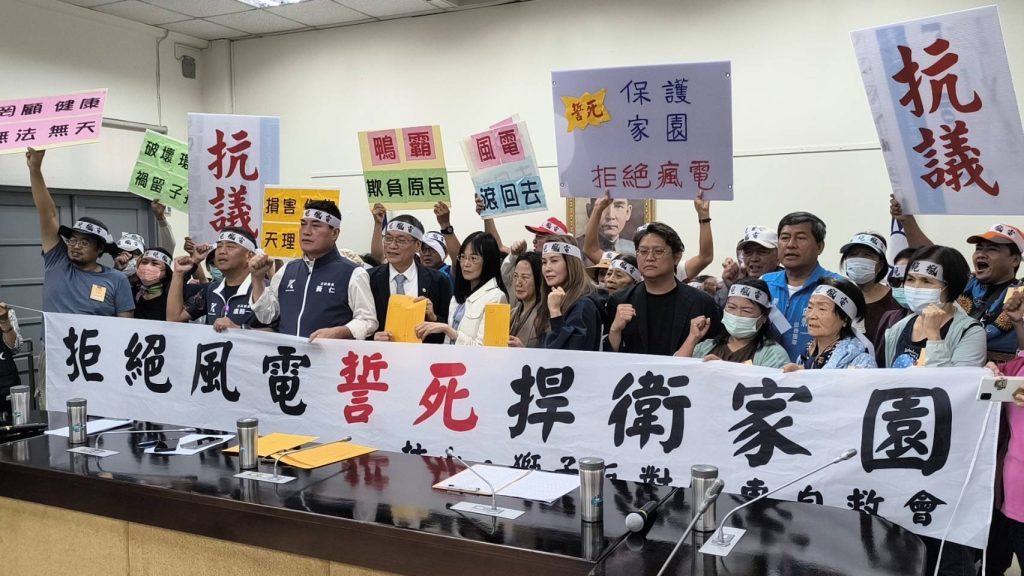 屏縣枋山鄉、獅子鄉共四十名鄉親,三十日上午抵達立法院,由蘇清泉等五位立委出面接見,鄉親頭繫「拒絕瘋電」白布條,高呼「破壞環境、禍留子孫」、「損壞作物、傷天害理」等口號,並向經濟部與環境部官員遞交陳情書,表達強烈反對設置風力發電機組的意願。