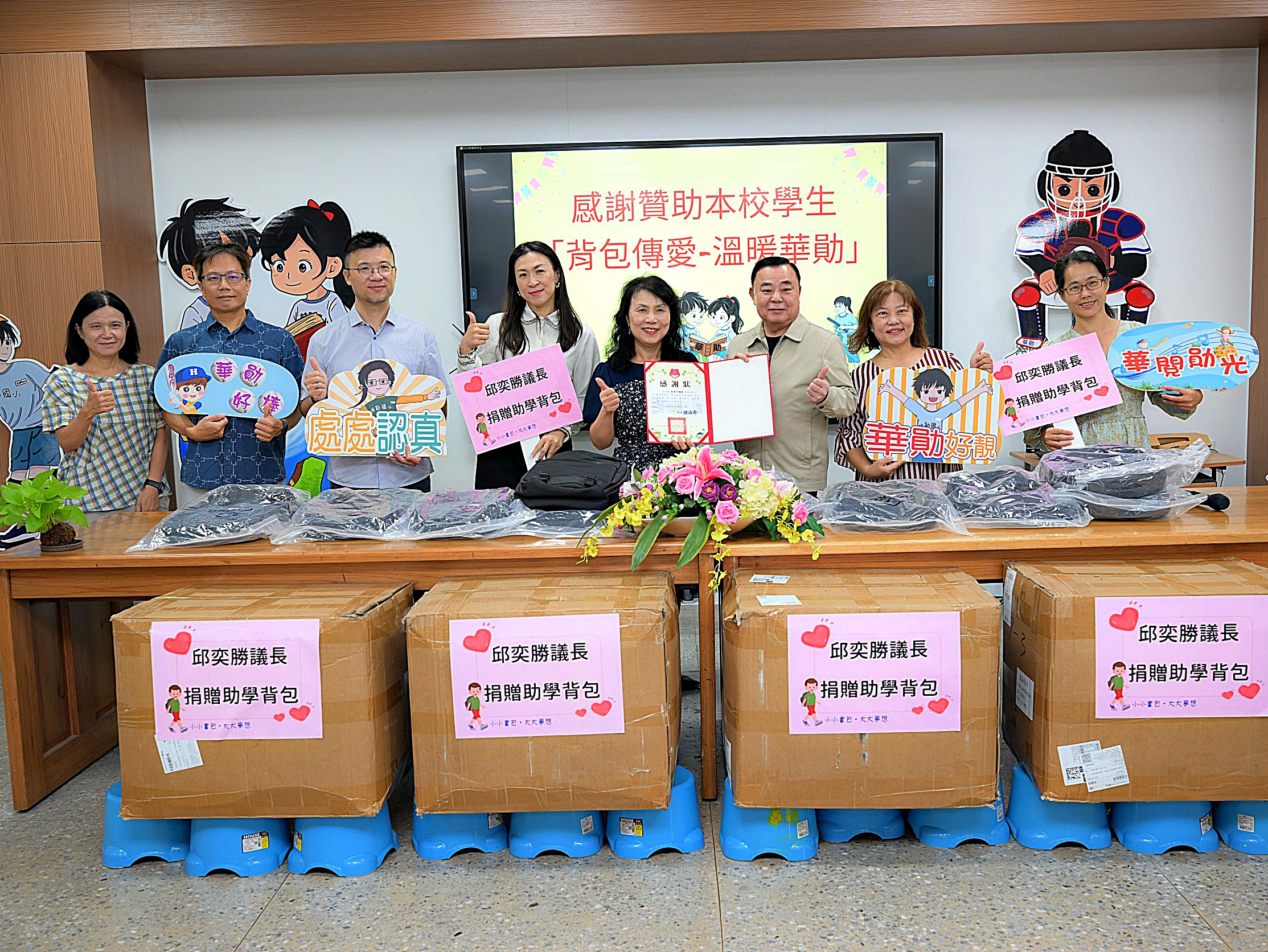 邱奕勝議長於十月三十日親自前往華勛國小及大崙國小出席捐贈儀式,與孩子們互動合照,並勉勵大家勇敢追夢、珍惜學習的機會。他長表示,教育是改變命運最有力量的途徑,一個背包雖小,象徵社會的關懷與溫暖,讓更多孩子感受到關懷與鼓勵,也期盼這份愛能在他們心中扎根,長大後化為回饋社會的力量,延續這份善與愛的循環。