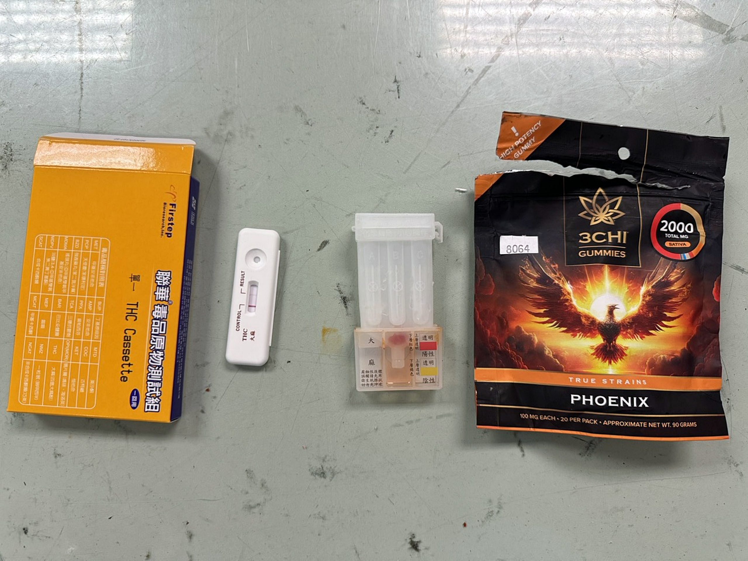 海巡署偵防分署桃園查緝隊接獲線情,曾姓男子涉嫌在美國購買含有第二級毒品四氫大麻酚、六氫大麻酚成分之軟糖,準備於一一四年五月二十日搭乘班機來台,即會同桃園市政府警察局桃園分局、海關等單位於五月二十一日曾嫌入境時,透過X光檢查發現其隨身行李有可疑軟糖製品,以毒品試劑檢測出含有大麻成分。經查含有第二級毒品四氫大麻酚、六氫大麻酚成分之軟糖一包(淨重九十二點六0三公克),全案經桃園地方檢察署偵查終結,提起公訴。