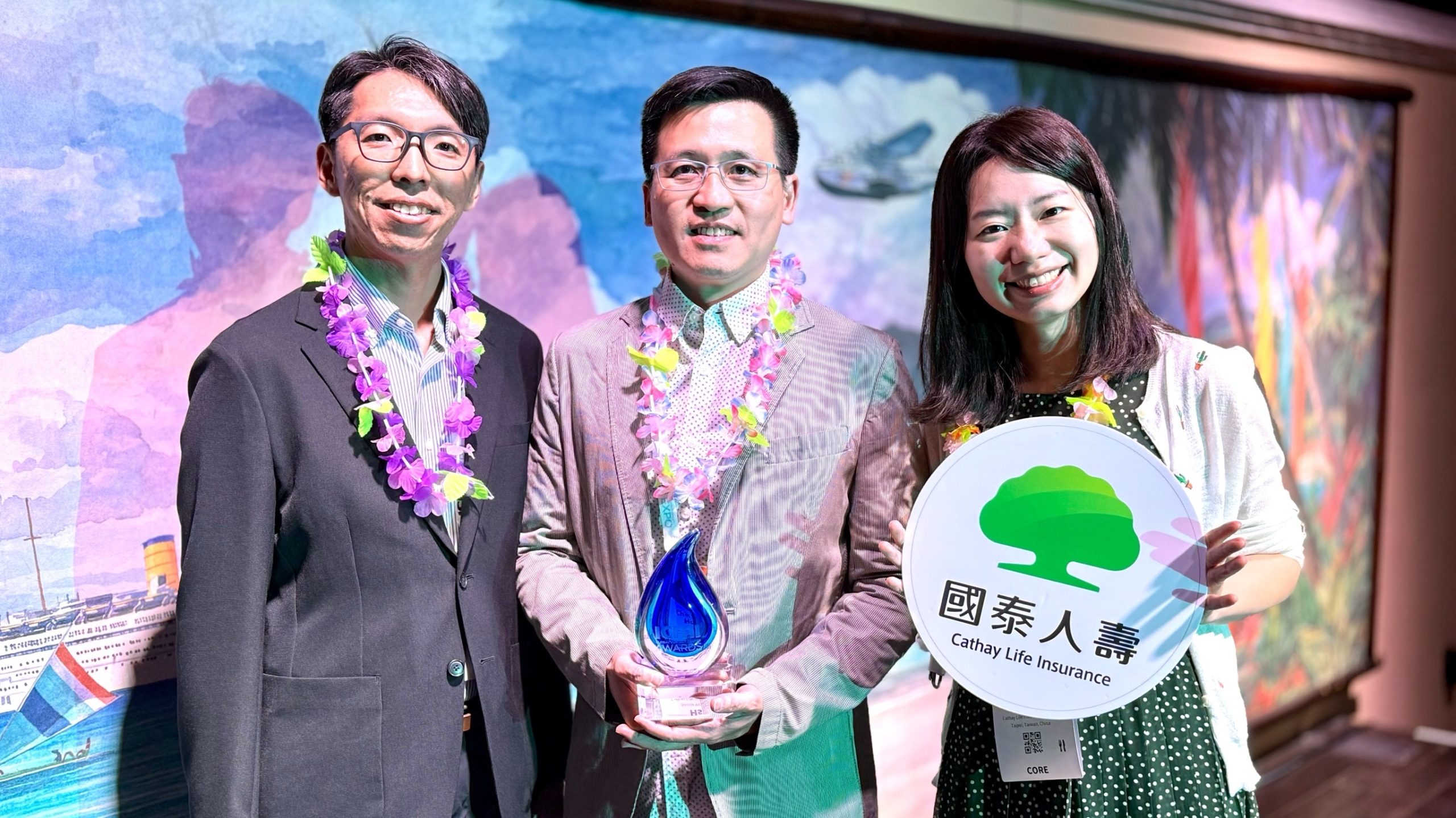 國泰人壽勇奪ICMI「最佳AI應用獎」首獎,打造保險服務X科技創新標竿,為亞洲唯一獲獎壽險業者,國泰人壽協理謝志寬(中)赴美國奧蘭多代表受獎。(國泰人壽提供)