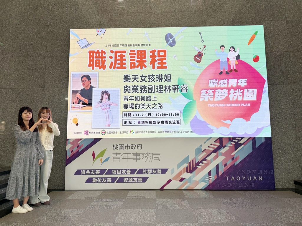 桃園市青年事務局積極推動青年職涯發展,自二0二三年起已舉辦超過百場課程與體驗活動,累計帶領逾五千位青年參與職涯課程與職場體驗,探索未來方向。為響應樂天桃猿隊成功奪得二0二五年台灣大賽總冠軍實,青年局本週日十一月二日上午十時在本局之青創指揮部(中壢區環北路三九0號三樓),邀請樂天女孩啦啦隊琳妲以及業務企劃林軒睿副理,與大家分享在球團工作的職涯心得。