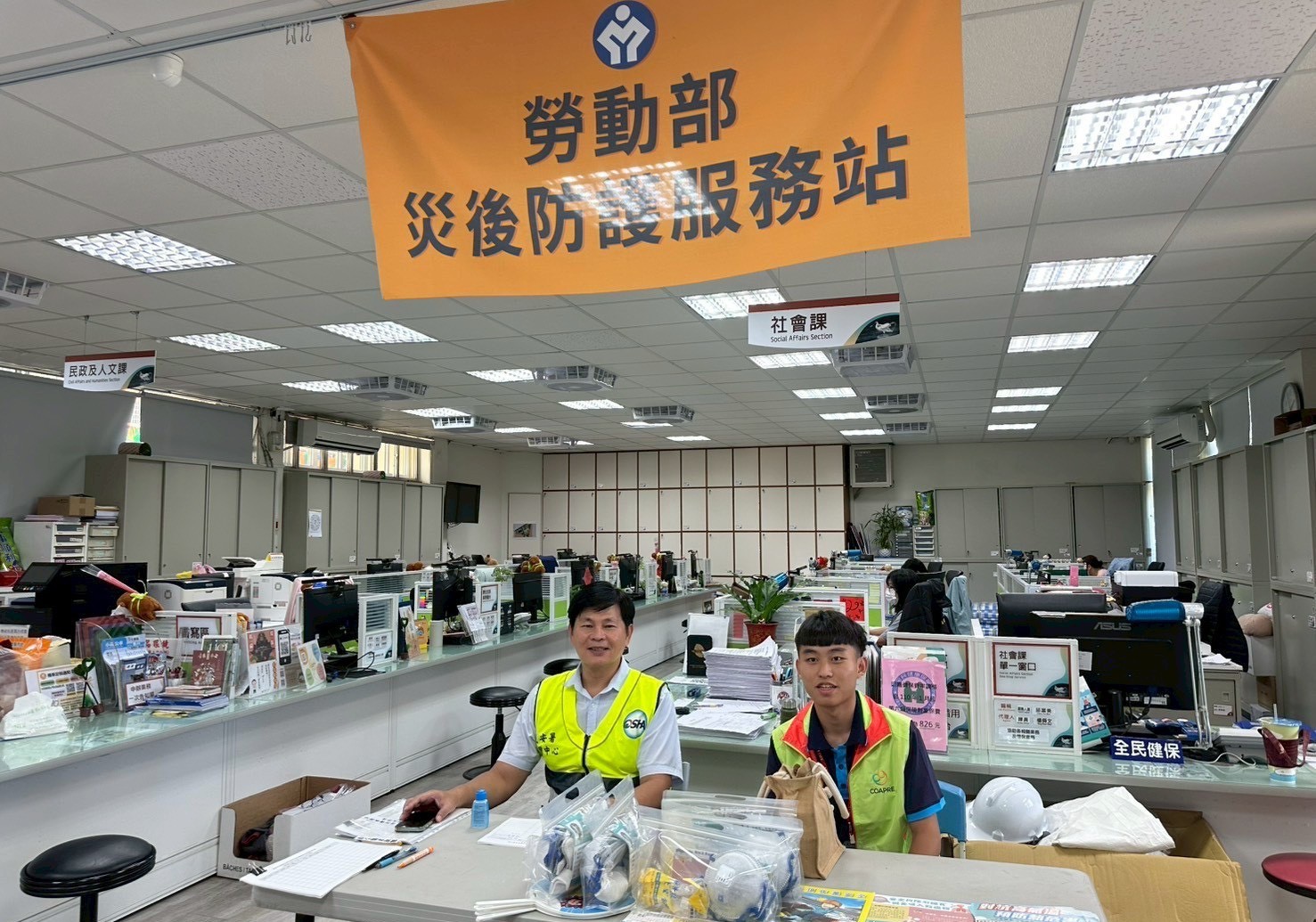 職安署從開始設立「災後重建防護指揮所」至十月卅一日中午共宣導一千四百八十案,完成房屋修繕數廿五戶。災後防護服務站及輔導團物資發放量總計有:防護包一萬一千一百卅六組、淨氣式面罩四百九十二具、防護衣四百六十九件、防護鞋套三百三十套、安全帽兩千八百五十九頂。