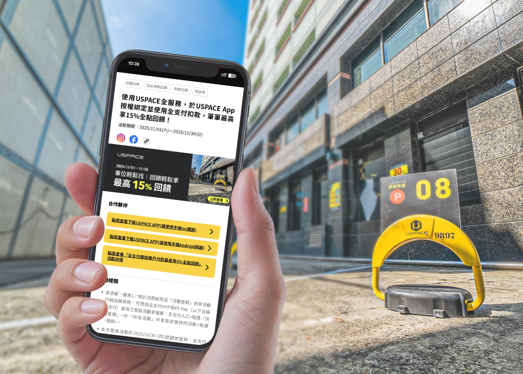 USPACE近年致力打造整合停車、租車、充電、代駕、洗車與機場接送等多元服務的一站式用車生態圈,全支付持續拓展行動支付應用場景,攜手USPACE推出筆筆最高15%全點回饋活動。活動期間2025年11月1日~11月30日,全支付會員於USPACE APP授權綁定全支付自動扣款並完成支付,即享筆筆 9% 全點回饋(單筆上限 20 全點,活動期間最高 60 全點);使用指定銀行帳戶付款再享 3%,搭配「帳戶無腦刷」再加碼 3%,三重回饋最高達 15%。此次合作將全支付回饋延伸至智慧出行領域,讓會員在日常移動中享受更多便利與實惠,體驗更聰明的用車生活。