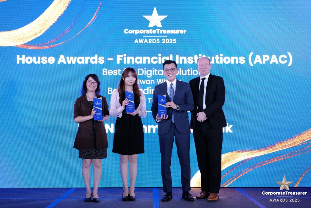 《Corporate Treasurer》「2025 CT Awards」昨(30)日於新加坡金沙酒店舉行頒獎典禮,玉山銀行以線上雙幣投資及外匯交易室數位平台,榮獲「Best Trading Platform in APAC」、「Best Trading Platform in Taiwan」及「Best for Digital Solutions in Taiwan」三項大獎殊榮,展現玉山在金融交易服務的專業與平台領先地位及創新實力。