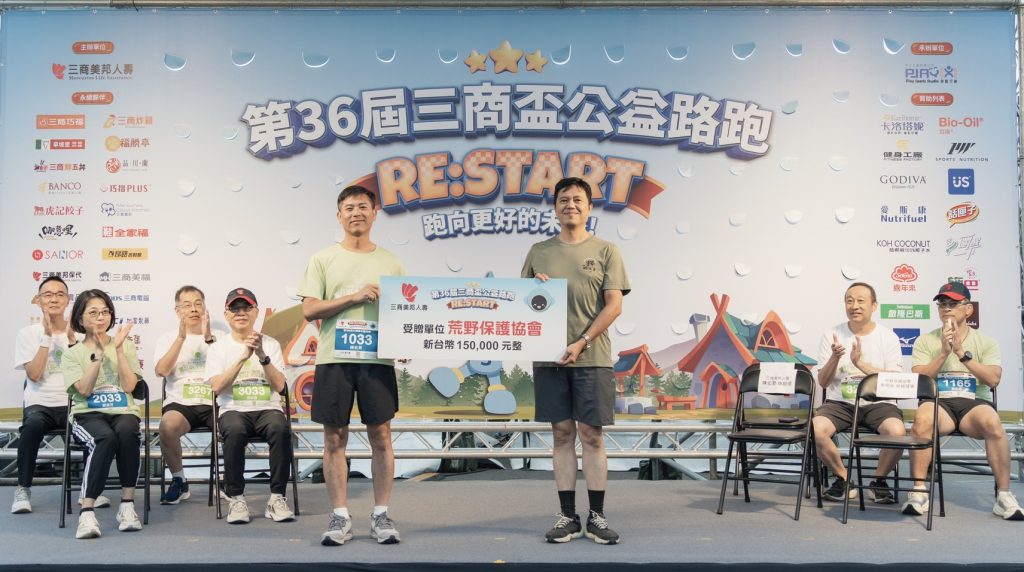「第36屆三商盃公益路跑」於11月1日(六)在新北市八里區十三行文化公園熱鬧登場,由主辦單位三商美邦人壽副董事長許瀞心及總經理陳宏昇率領多位高階主管與逾千名的跑者一同開跑挑戰,同時響應ESG永續理念,特別將部分報名費捐贈予長期投入台灣生態保育的「荒野保護協會」,並由該協會宋明光常務理事代表受贈。