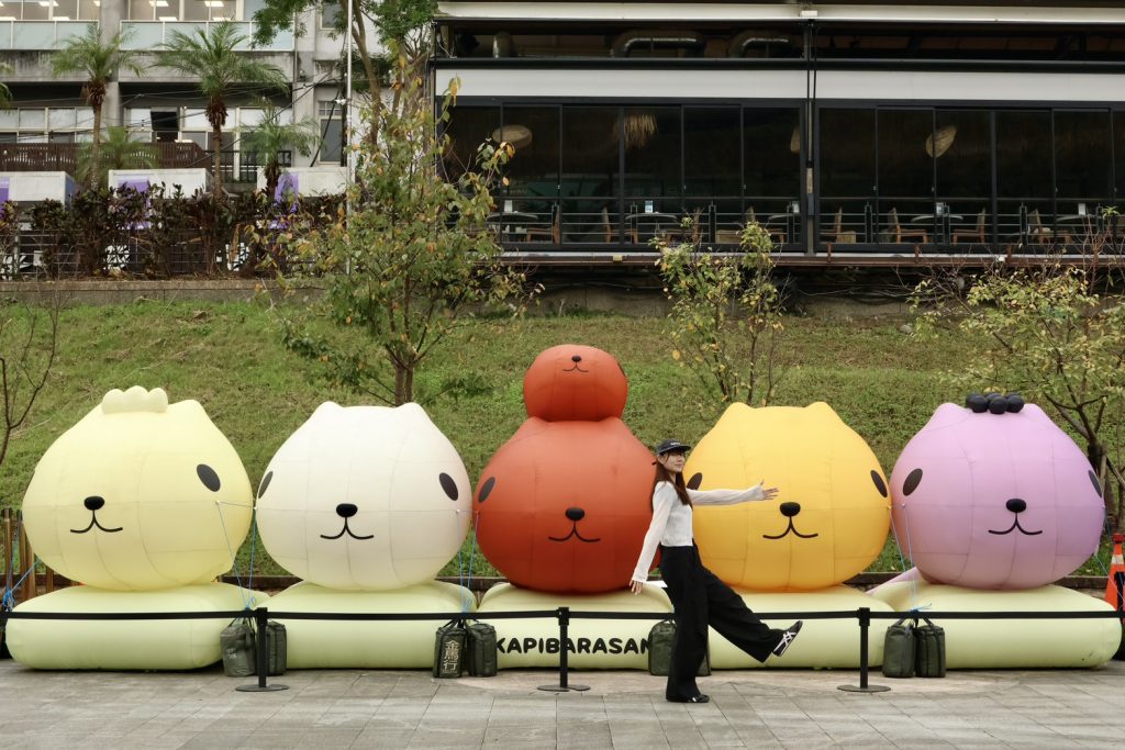 新北市觀光旅遊局指出,觀旅局今年特別邀請來自日本的超人氣插畫 IP 「水豚君(KAPIBARASAN)」來臺,打造獨一無二的地景裝置。本次新店碧潭展覽不僅是水豚君IP首度在臺灣以高達12公尺的水上大型裝置登場,更是在臺灣第一次與政府單位進行官方大型合作!