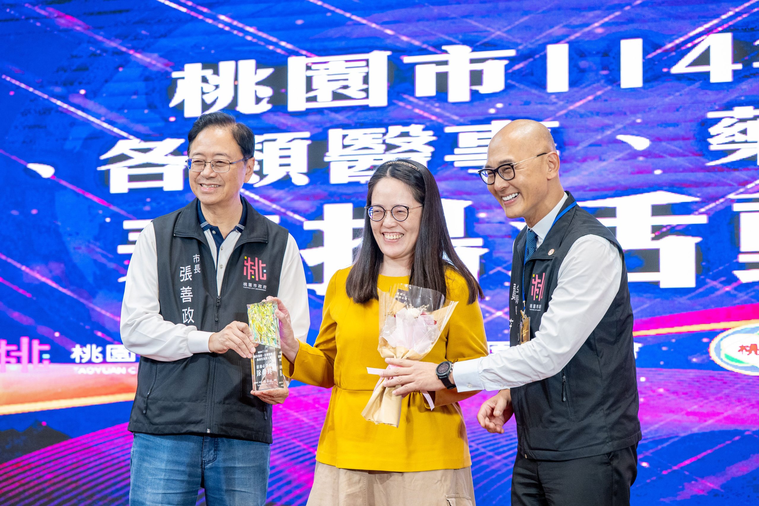 桃園市長張善政一日出席「桃園市一一四年優良醫師、各類醫事、藥事及長照人員表揚活動」,並逐一頒發獎座肯定獲獎人員傑出貢獻。張善政表示,市府積極推動多元健康照護政策,包含擴大肺癌篩檢、多項孕產婦福利措施,以及三十一日啟用的「行動CT醫療車」等,皆需仰賴全市醫師、醫事、藥事及長照人員的辛勤付出,才得以順利推動,感謝從業人員發揮專業、貢獻所能,和市府共同守護市民健康。