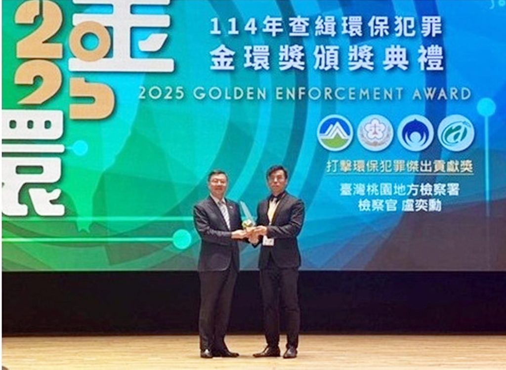 臺灣高等檢察署、環境部環境管理署、內政部警政署、農業部林業及自然保育署於二十九日在環境部舉行「一一四年金環獎頒獎典禮暨全國查緝國土保育及環保犯罪成果表揚大會」,展現政府跨部會強力維護國土環保成果及決心,行政院院長卓榮泰、法務部部長鄭銘謙、臺灣高等檢署檢察長張斗輝及相關部會首長均到場勗勉。