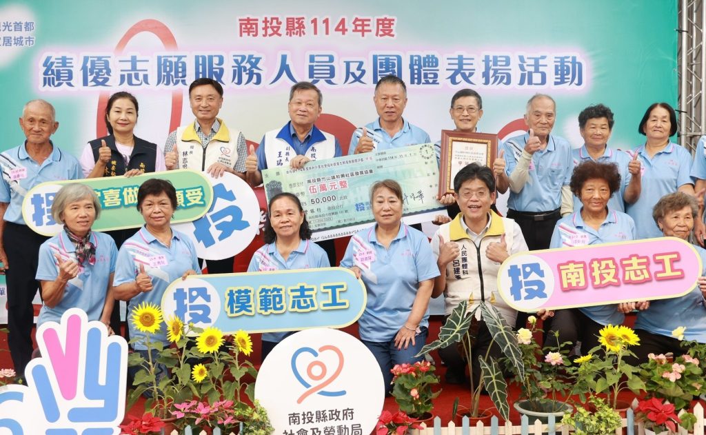 為感謝及鼓勵志工們的無私奉獻,南投縣政府一日舉辦績優志願服務人員及團體表揚大會,會中頒發金、銀、銅質獎章給服務時數五百小時以上的志願服務人員,計有三百四十餘人獲獎,社會福利績優志願服務評鑑優等團體則有竹山鎮延正、中央與南投市營南、草屯鎮平林等四個社區發展協會,分別頒發獎牌及獎勵金十萬元。