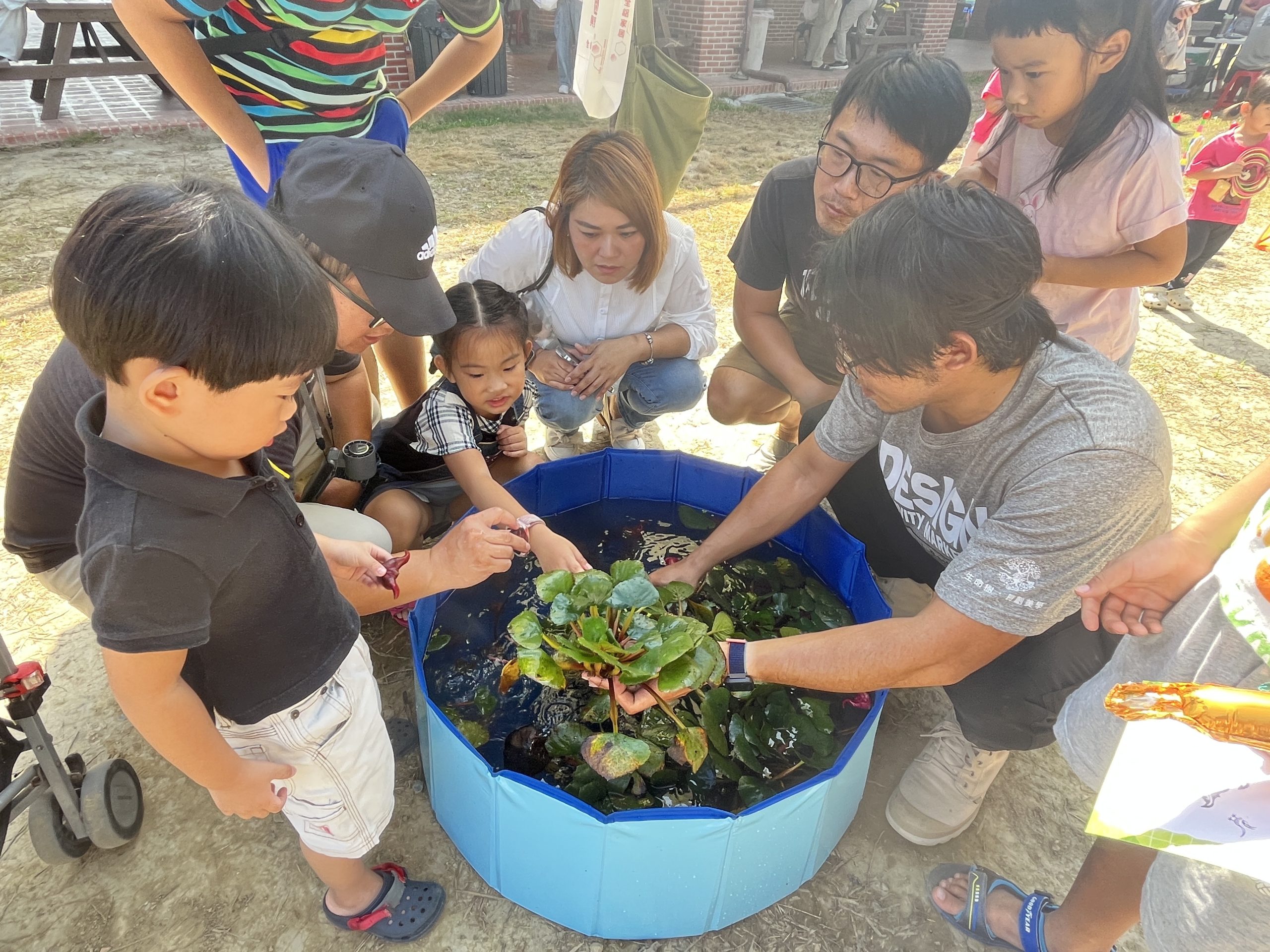 另有菱殼炭循環再利用的「火山擴香石、炭造粒實驗DIY」及菱角殼再利用的「手操紙、菱角染絲巾DIY」等手作,另有小農市集及水管阿民街藝互動秀、禮物盒劇團精彩演出,小旅行導覽等。