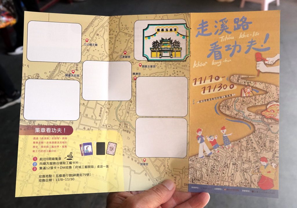 參與集章活動的宮廟包括興濟宮、開基玉皇宮、三老爺宮、三山國王廟、開基天后宮與開隆宮。民眾只要至其中一家廟索取活動DM,便可至各廟集章,每廟並可免費索取工藝卡片兩張,集滿章以及十二張工藝卡片便可兌換「府城工藝開箱桌遊」一套。