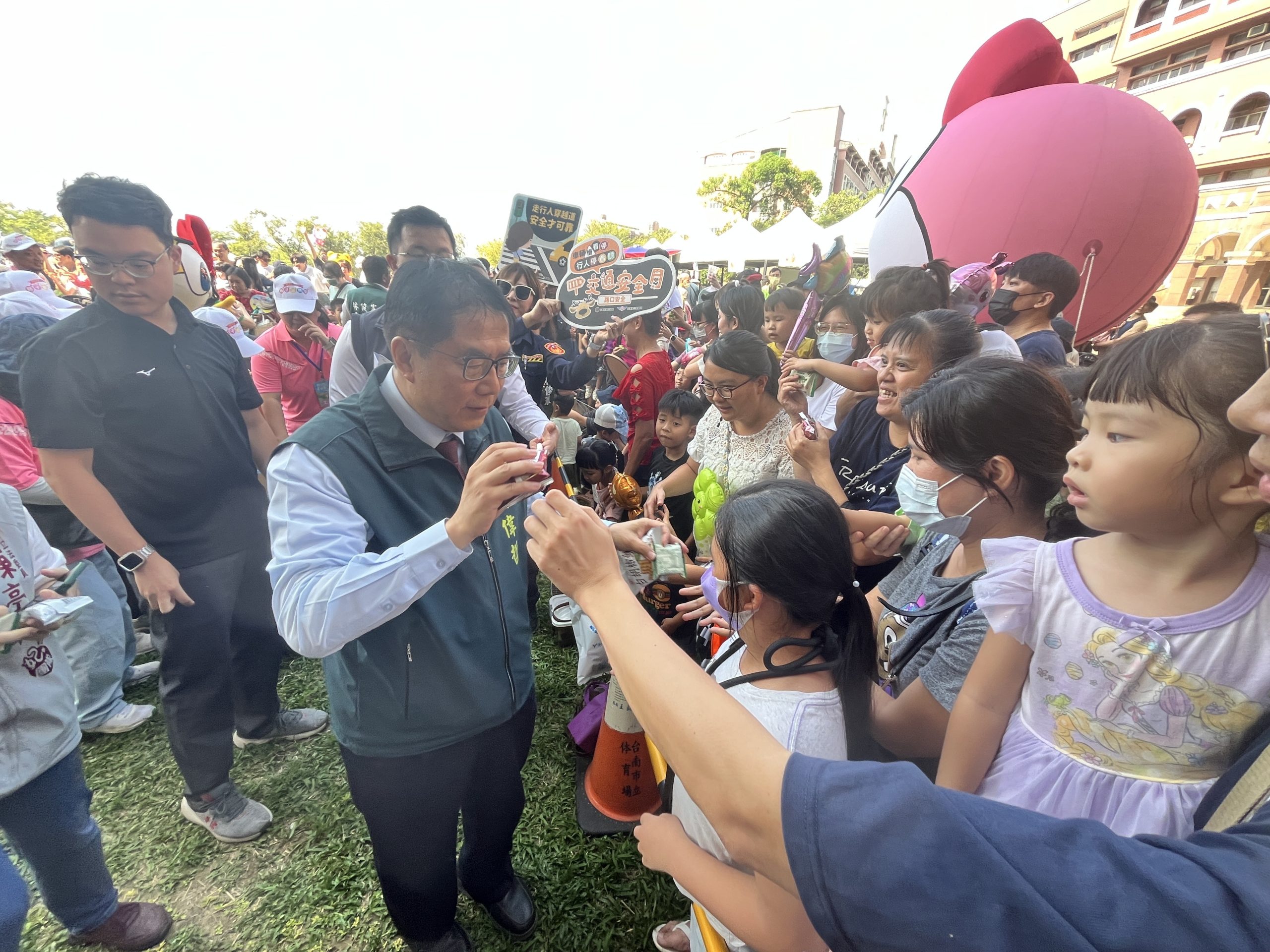 二0二五台南市親子童樂會一日首度在曾文市政願景園區登場,現場吸引親子們闖關、欣賞YOYO家族哥姐及多位超人氣卡通明星精彩的唱跳表演,市長黃偉哲也到場與親子們同樂,與四千名親子共享歡樂時光。