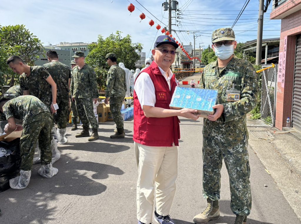 台中市府歷經多次非洲豬瘟案場清消作業,仍在第二次環境樣品檢出病毒核酸,中央應變中心請國防部調派國軍協助清消工作。市府農業局長張敬昌代表市長盧秀燕前往現場慰問國軍弟兄與第一線防疫人員,感謝國軍弟兄聞令即動,在惡臭、濕滑及泥濘環境下投入艱鉅清汙任務,與市府防疫團隊肩並肩守護畜牧產業安全,辛勞令人敬佩。