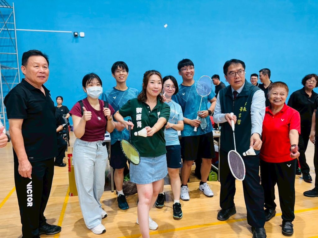 黃偉哲到場為選手加油打氣,他表示,台灣勇奪羽球金牌帶動運動熱潮,台南市運動風氣相當強盛,每一個球場使用量相當高,未來也將加快腳步建置更多良好的運動場地,讓市民可以就近鍛鍊身心,提升體育風氣,將台南打造成健康運動城市也為國家培育出更多運動好手。