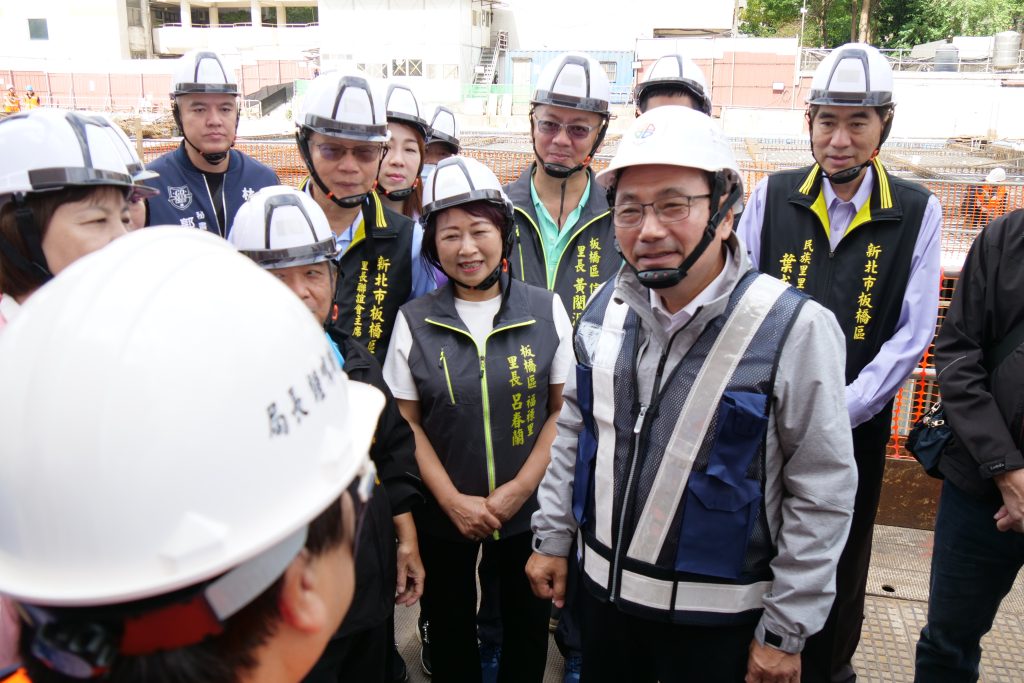 新北市長侯友宜一日前往板橋信義國小視察地下停車場工程。(記者蔡琇惠攝)