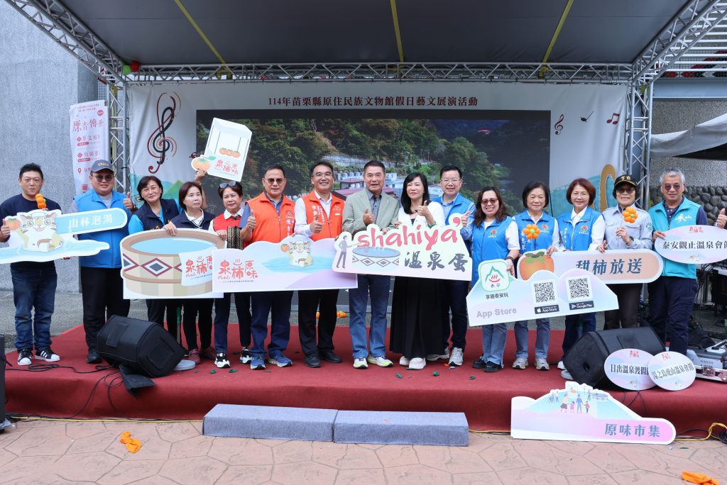 苗栗縣文觀局攜手雪霸國家公園管理處、泰安鄉公所及泰安溫泉區觀光發展協會,舉辦為期兩天的「泉柿原味」泰安溫泉暨甜柿推廣活動,一日在泰雅原住民文化產業區登場。