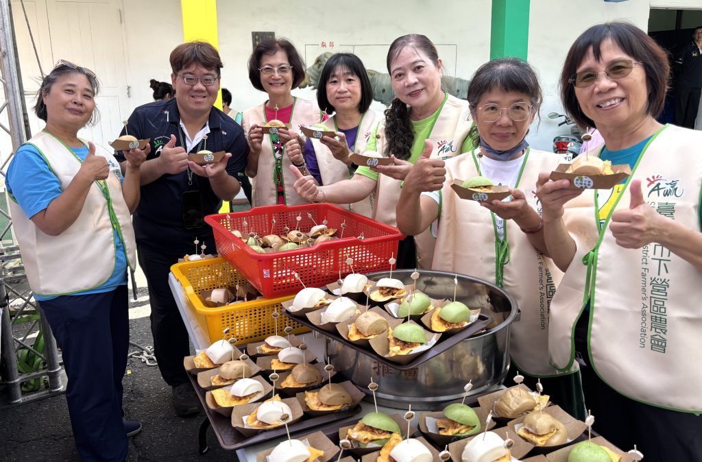 現場有下營鵝肉鬆、桑葚汁、黑豆漿、黑豆茶免費品嘗,農會家政班並以下營農會鵝肉鬆、黑豆蔭油和柳營農會牛奶饅頭、關廟農會關廟麵,創意製作鵝香乳香雙饗饅頭、醬香關廟麵炒麵,讓民眾眼睛為之一亮,食慾大增。