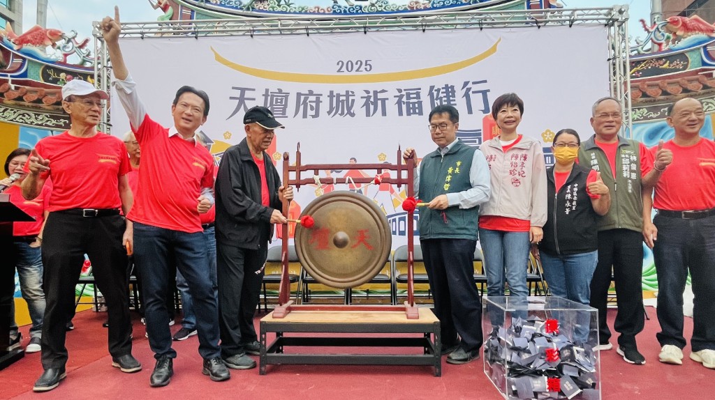 走一段平安路,許一世幸福願!台灣首廟天壇(天公廟)二日舉辦「二0二五府城祈福健行」,市長黃偉哲、天壇董事長徐國潤共同敲鑼揭開序幕,為台灣祈福,並祝福大家健行過程中從從容容、游刃有餘。