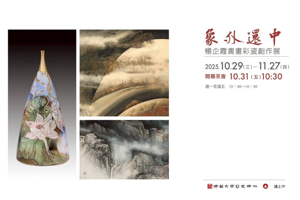 此次展覽以「象外環中」為題,寓意在無限循環與意象轉化中尋找精神的延展。透過書畫與彩瓷的對話,楊企霞以細膩筆墨與豐富層次,構築出一種跨越時空的美學空間,展現當代東方藝術的深邃底蘊與女性創作者的內在力量。