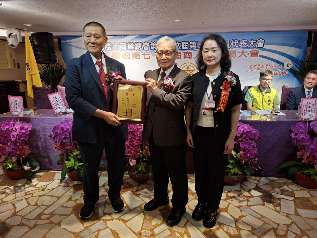 基隆市商業總會舉辦第七十九屆商人節表揚大會,會中除表揚七大項共一百二十六個優良商號、優良商人及資深從業人員等,同時由商業總會理事長鄭錦洲親自頒發聘書,聘任商界大老林榮吉擔任榮譽理事長,表彰其長年來對於商業發展的付出與貢獻,場面溫馨感人。