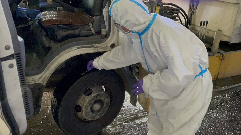 近期動保處已提高化製場稽查密度,平時每天派員現場督導及協助,確認作業流程符合生物安全規範,定期針對收運豬隻車輛進行採樣監測,啟動化製場回溯複查來源豬場機制,確保疑似病例早期發現、即時應變。