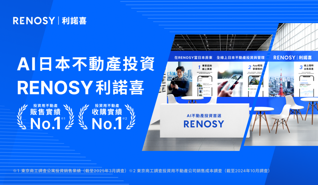 在日本連續多年榮登日本投資用不動產銷售實績第一的「 RENOSY 利諾喜」,將於 2025 年 11 月 6 日首度參與財訊舉辦的「全球投資論壇」。本次論壇以「掌握升值關鍵!全球房市實戰解析」為主題,「 RENOSY 利諾喜」將由專業顧問為與來場者帶來針對日本房市動向的深入說明,並提出專業數據分析與案例分享,協助投資人洞悉跨境房市的發展脈動。「 RENOSY 利諾喜」也將於11月7日起連續三天出展台灣國際房地產博覽會,現場提供專業一對一顧問諮詢服務!擁有日本AI房地產投資服務的獨特優勢,將會成為台灣投資人置產日本的跨境投資新選擇。