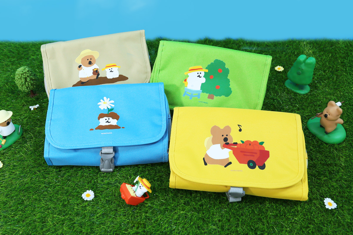 為迎接雙 11 購物季,這次愛康也同步推出全新療癒周邊。DINOTAENG 隨行盥洗包以飽和配色與可愛角色插畫呈現,共有藍、綠、黃三色,由 QUOKKA 與 BOBO 化身旅伴,描繪滿載陽光氛圍的日常場景。包款設計可折疊、可吊掛,內層分隔清晰、容量充足,兼具療癒感與實用性,無論旅行出遊或日常收納都能輕鬆應對。