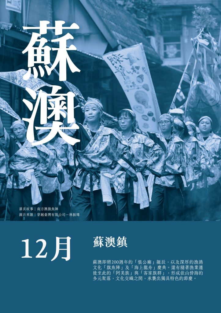 二0二六宜蘭社區日曆邀請青年們發掘具特色的地方節慶活動,由李真理(Yaway)、亞威伊哈勇(Yawi)、林蓓郁、葉品秀、王堉嘉、張庭瑄、詹晴安、江珮萱、莊沂儒、林芷晴、廖苾君及張又婕等十二位青年撰寫,走遍大小村落、拜訪在地居民,深入田野進行訪談,蒐集各地有趣的慶典習俗,記錄下節慶與常民生活軌跡交織的過程,以嶄新視角描繪地方樣貌,進一步保存及推廣蘭陽土地記憶。