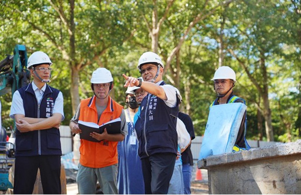 陳大田指出,由於鰲峰山地勢起伏,且區域可能受短時強降雨影響,施工期間必須強化邊坡穩定與排水導溝配置,既確保雨季排水順暢,也兼顧景觀美質;此外,他也要求團隊在大型遊具安裝階段持續注意吊裝作業安全與工區分流,確保施工品質及市民使用安全。