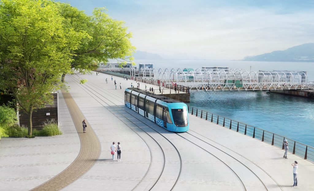 新北市淡海輕軌二期建設配合當地民意訴求,輕軌規劃不進入淡水老街而轉進河岸。(模擬圖/新北捷運局提供)